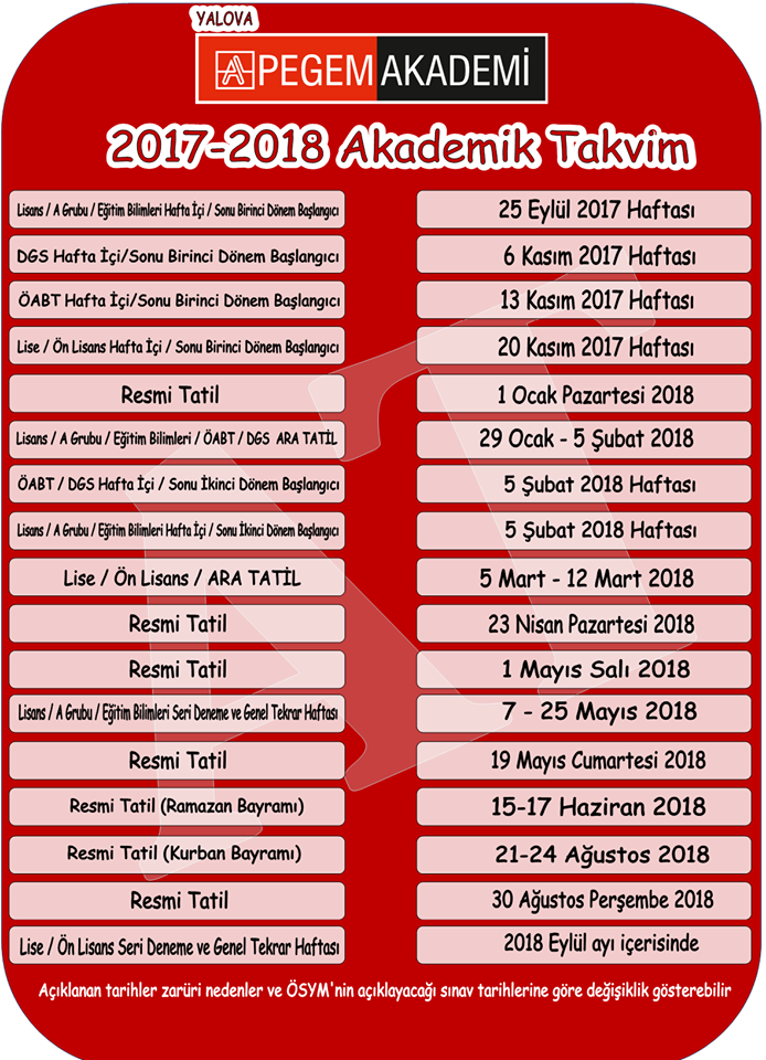 2017-2018 Dönemi Akademik Takvimimiz Hazır...